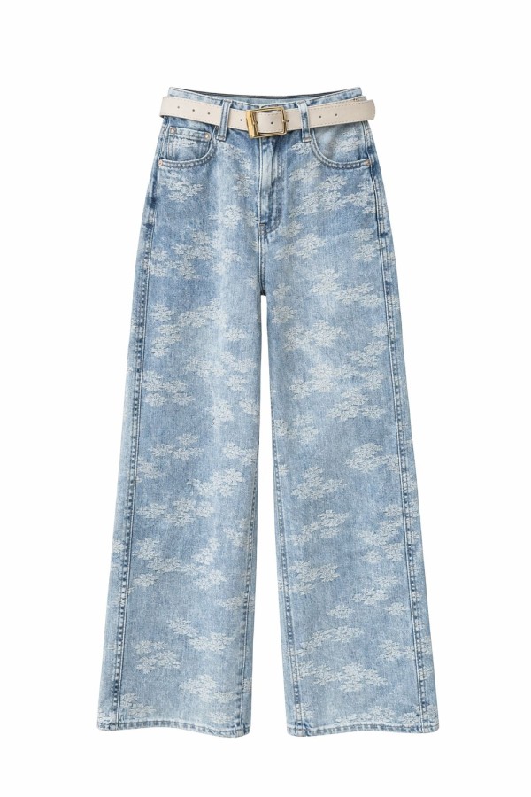 Floral Detailed Blue Jeans