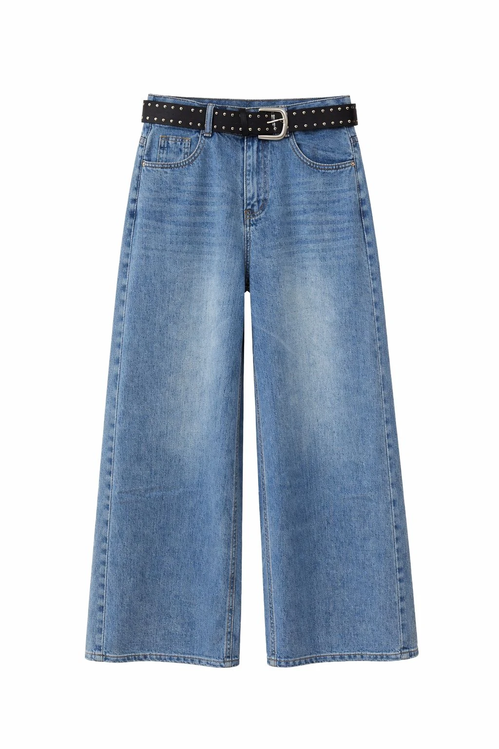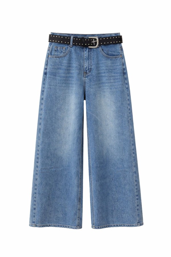 Belted Wide Blue Jeans