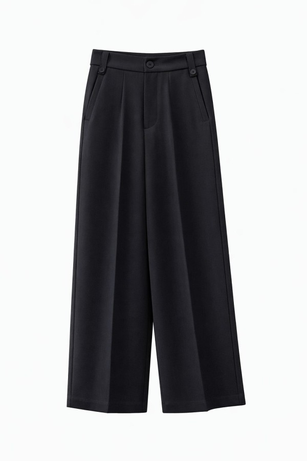 Triple Buttons Black Pants