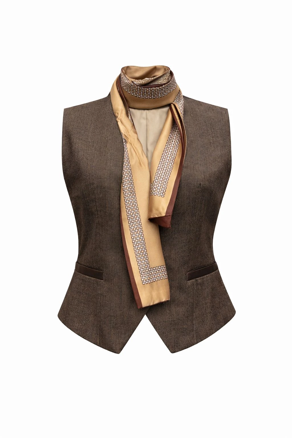 Brown Tailored Vest With Leather Back