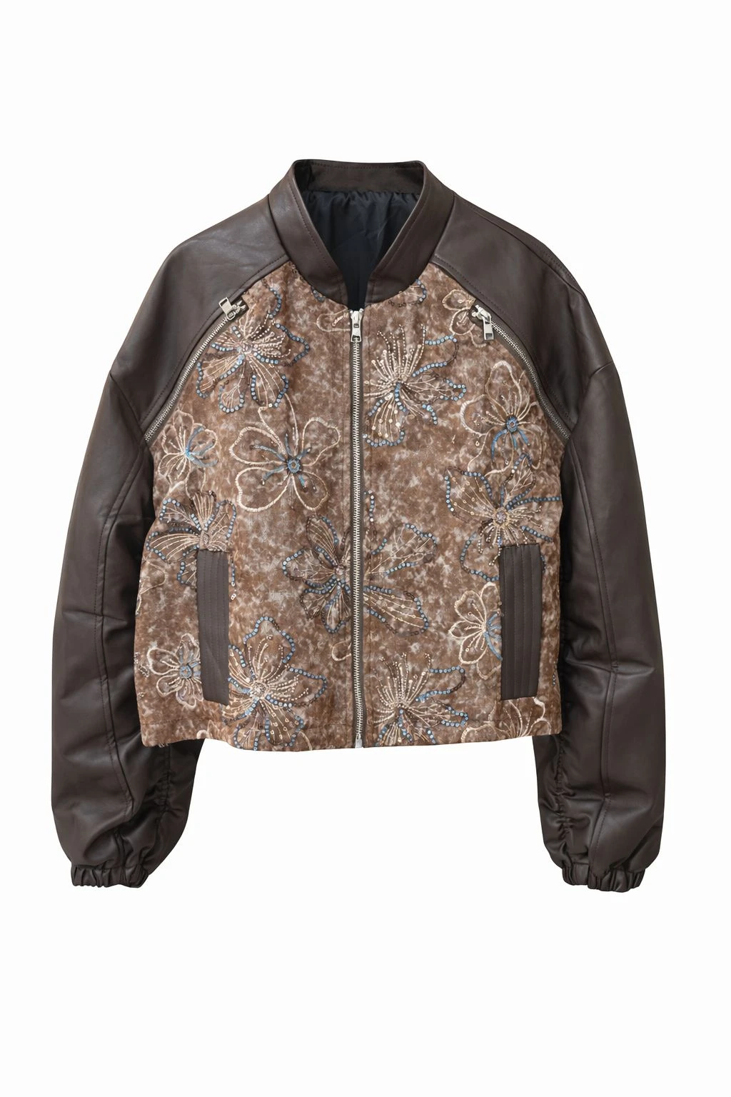 Brown Embroidered Bomber Jacket
