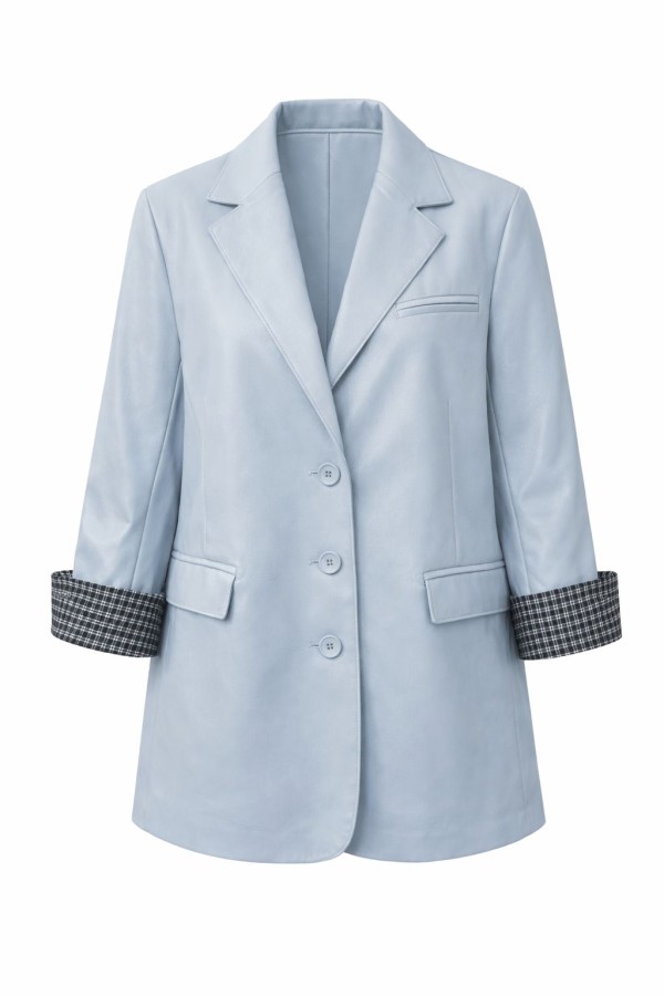 Faux Leather Blue Blazer