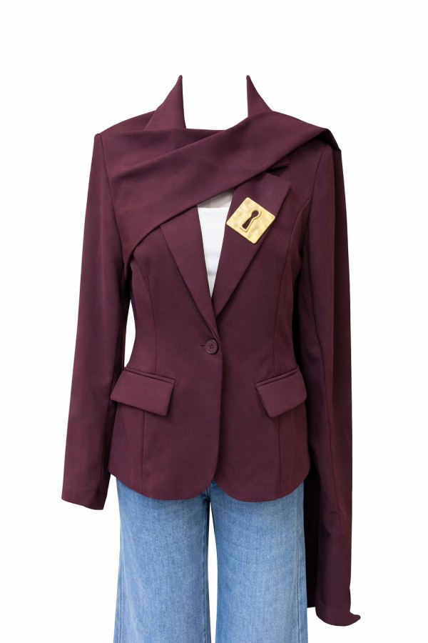 Draped Scarf Detail Burgundy Blazer