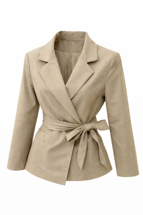 Tie Waist Wrap Beige Blazer