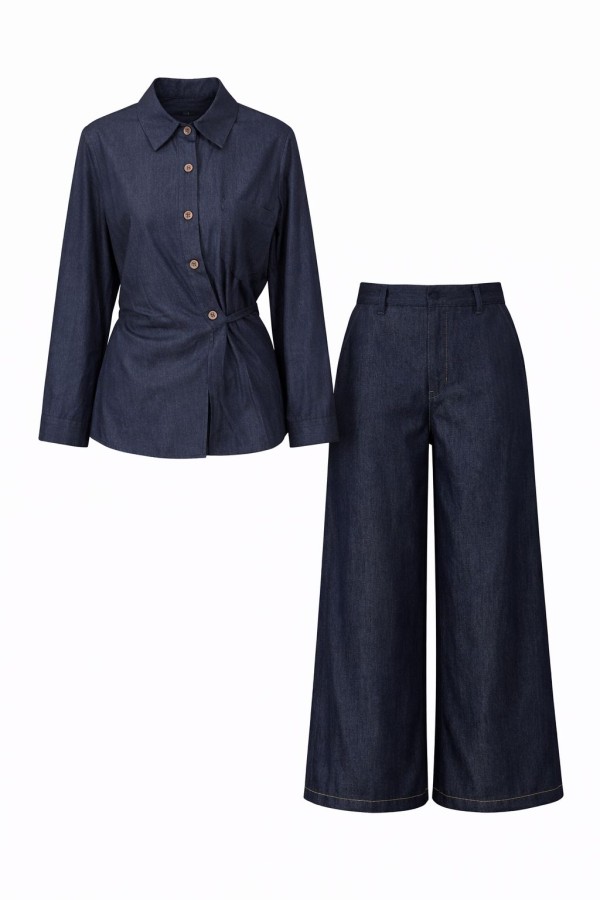 Denim Wrap Shirt & Wide Pants Set