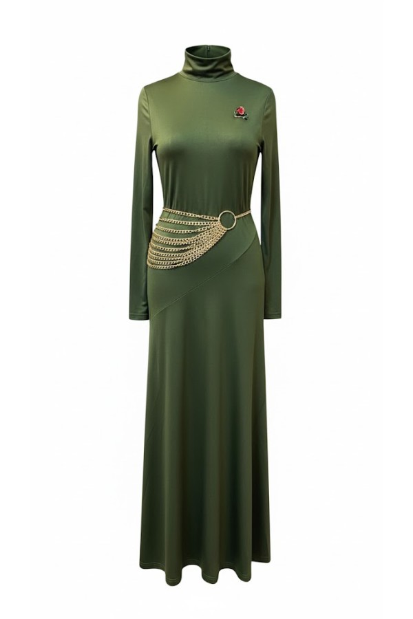 High Neck Maxi Olive Dress