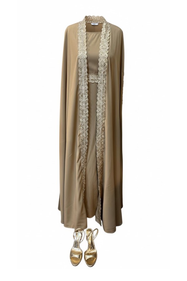Two Pieces Gold Edges Beige Abaya