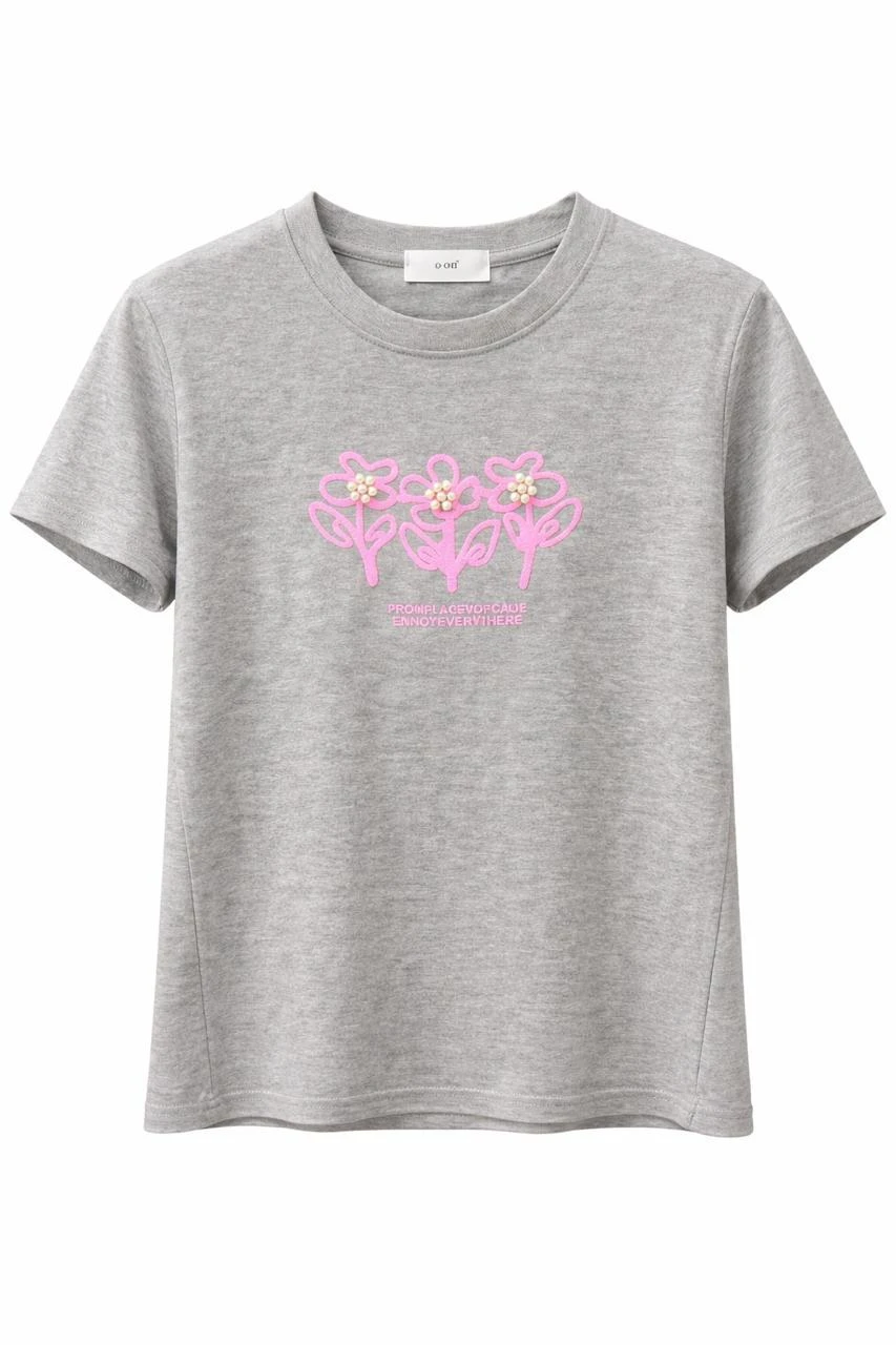Fluo Pink Flowers Grey T-shirt