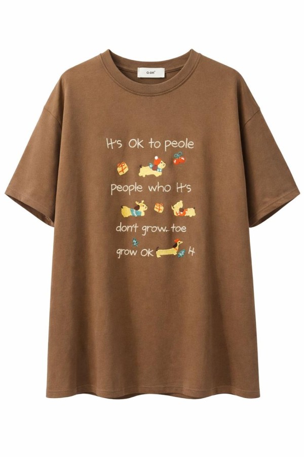Alphabetic Detailed Brown T-shirt