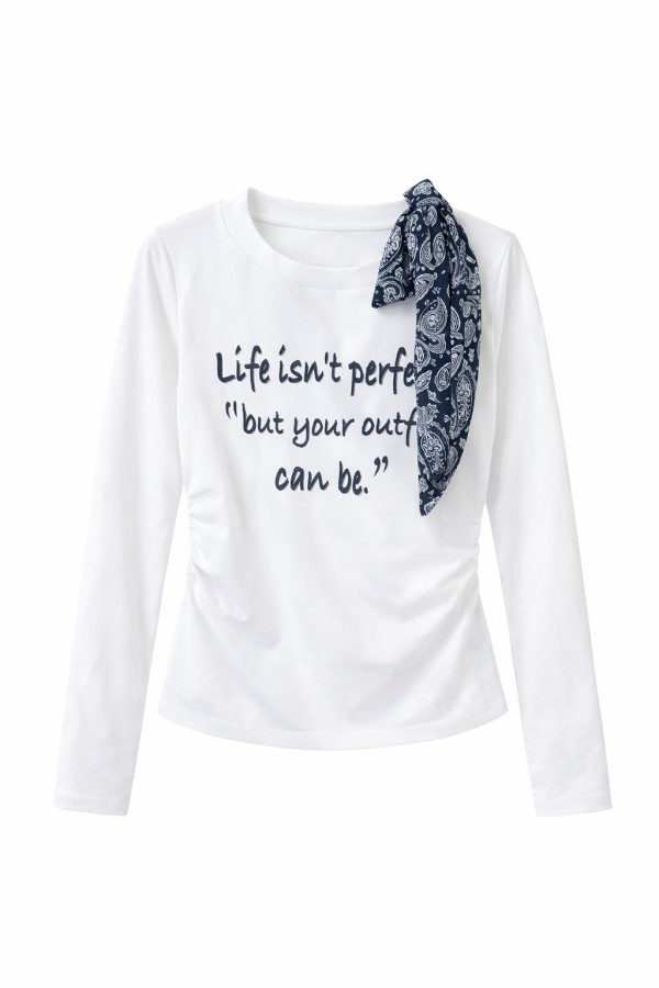 Navy Scarf Detailed White Top