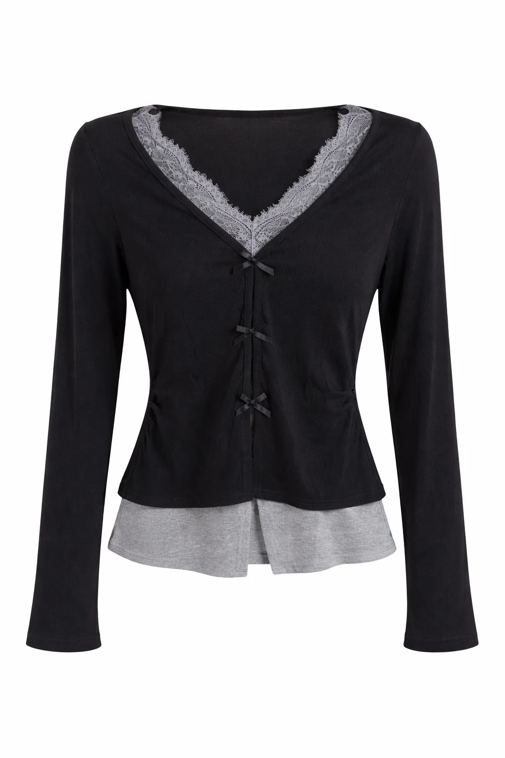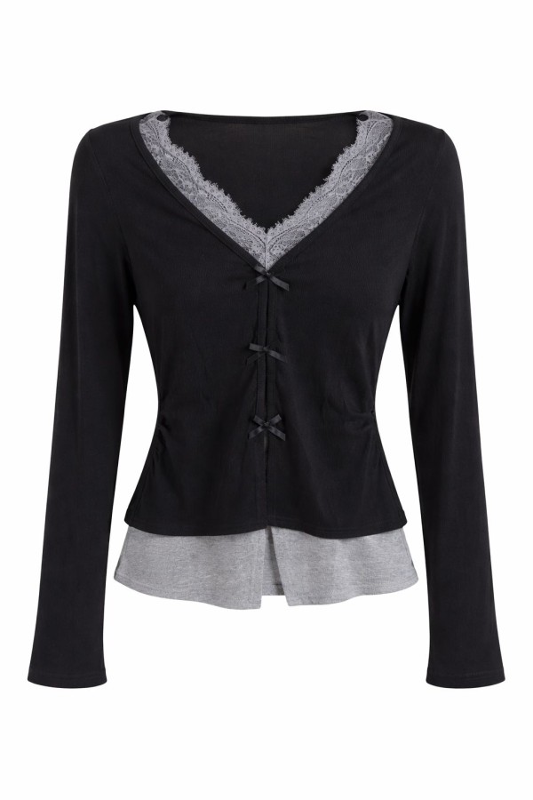Mesh With Bows Detailed Black Top