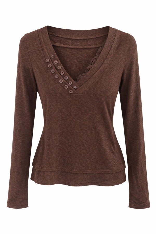V-neck Brown Top
