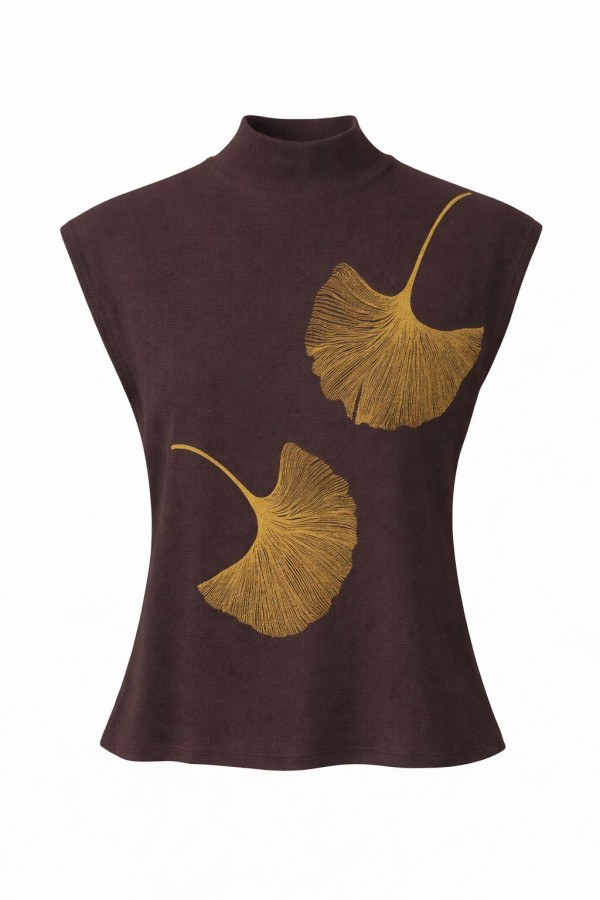 Gold Detailed Brown Top