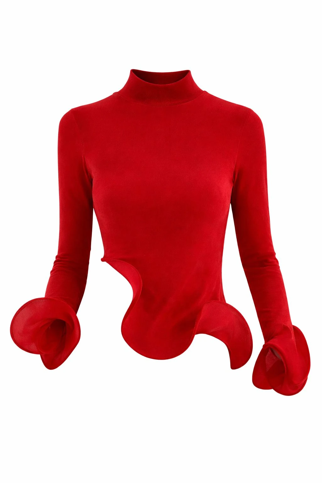 Fitted Long Sleeves Red Top