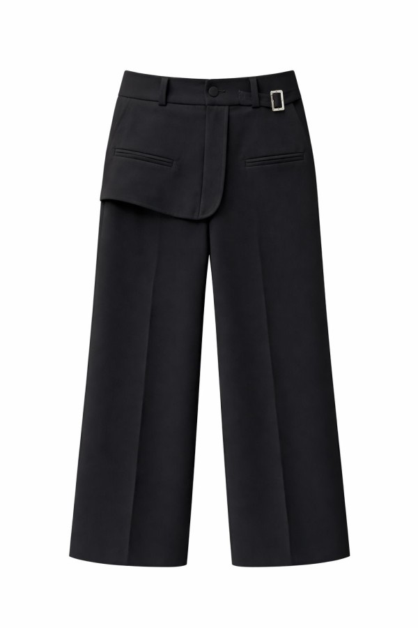 Wrap Style Front Layer Black Pants