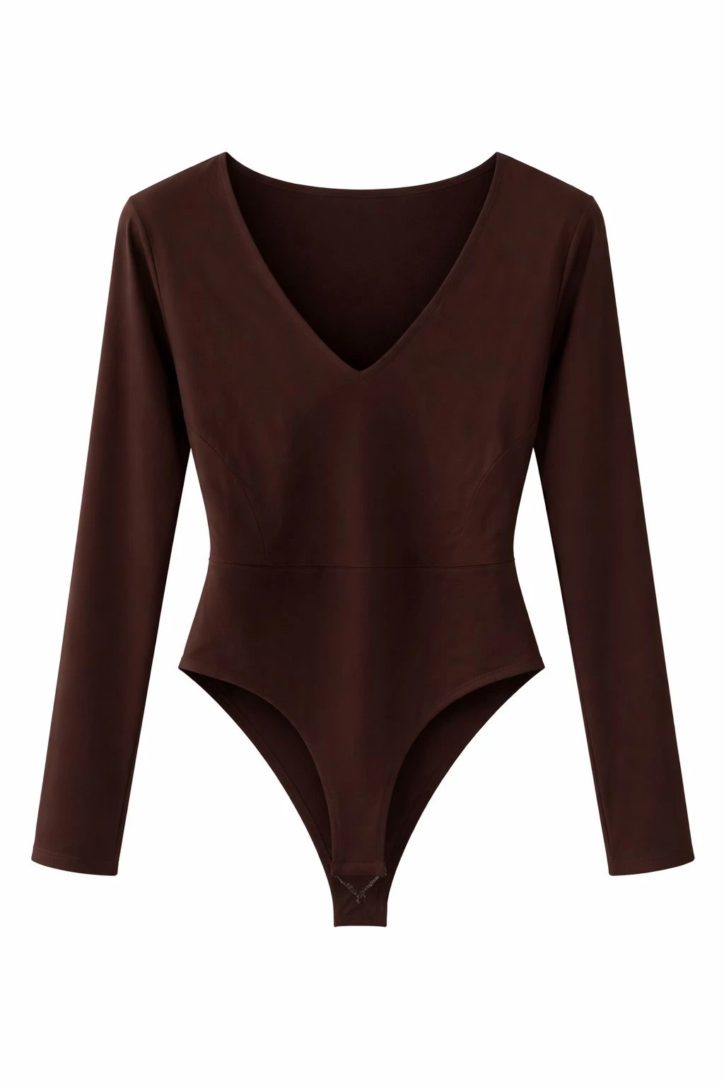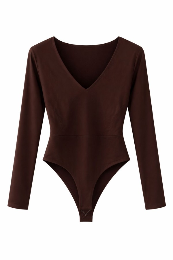 Long Sleeves V-neck Brown Bodysuit