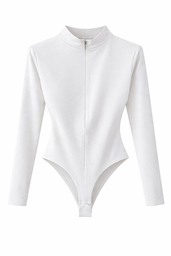 High Neck Zipped White Bodysuit