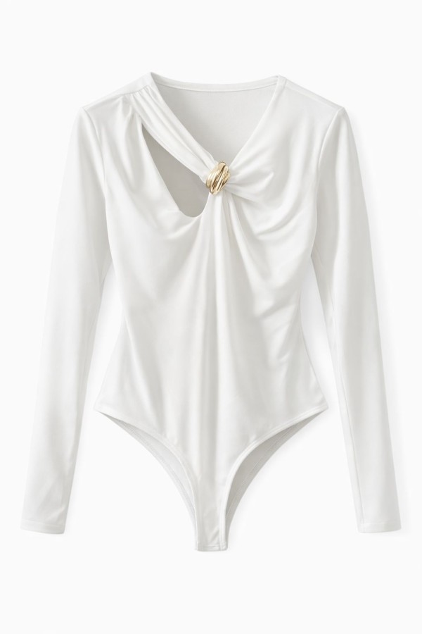 Gold Ring Detailed White Bodysuit