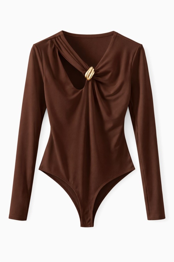Gold Ring Detailed Brown Bodysuit