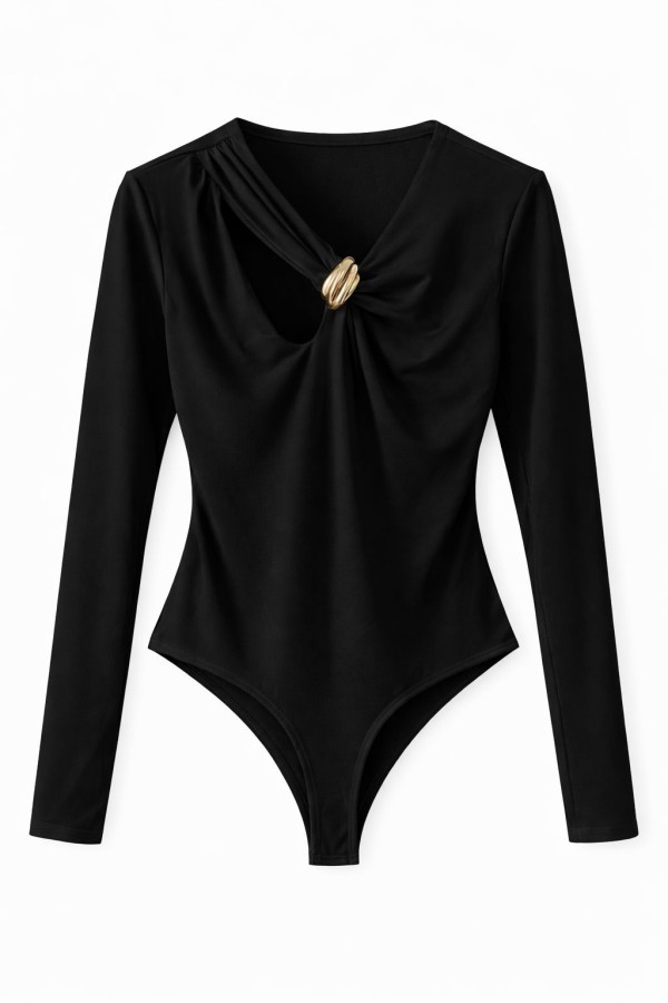 Gold Ring Detailed Black Bodysuit