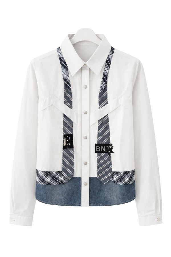 Cravat Style Detailed White Shirt