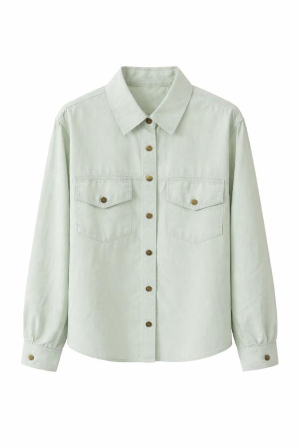 Buttoned Faux Denim Aqua Shirt