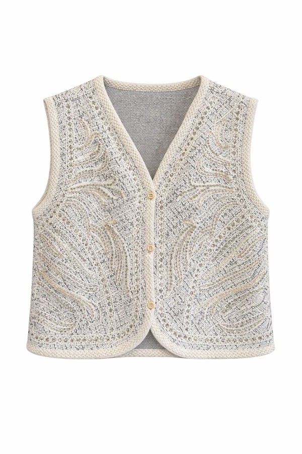 Navy Detailed Ecru Vest