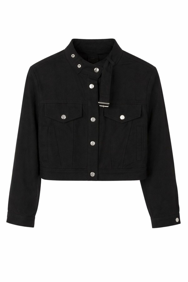 Neck Belted Black Jacket