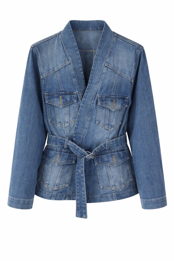 Classic Belted Denim Utility Jacket