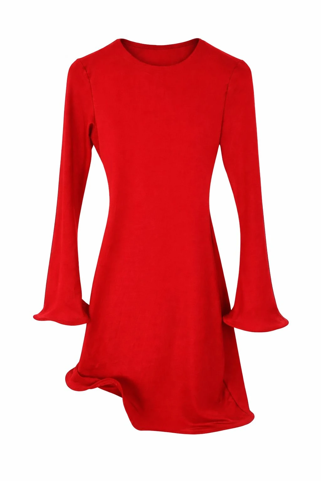 Fitted Long Sleeves Red Dress