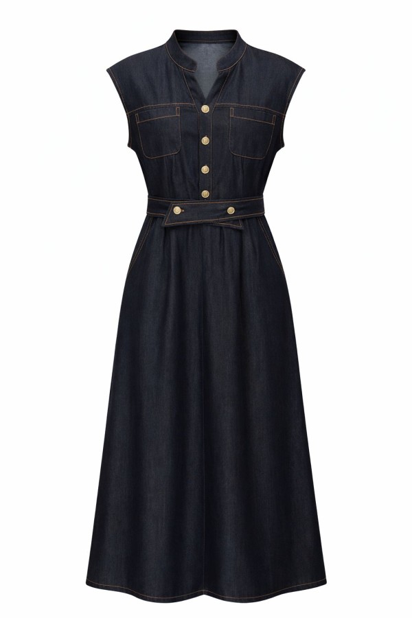 Sleeveless Midi Blue Dress