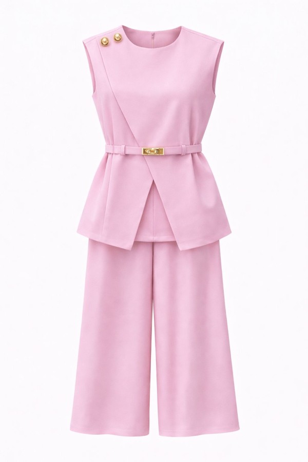 Belted Asymmetric Pink Set