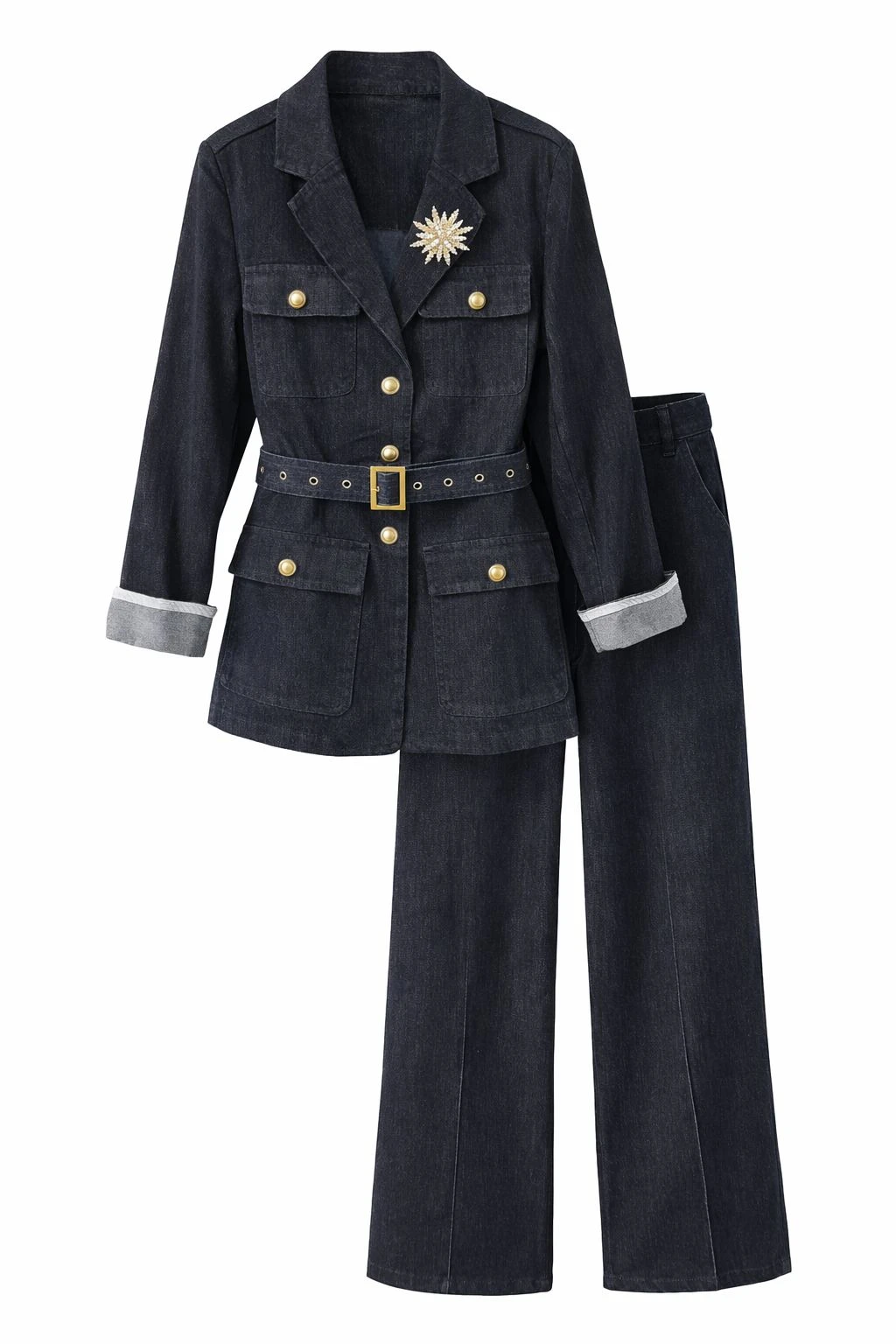 Gold Buttons Detailed Denim Set