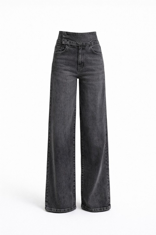 Double Side Buttoned Palazzo Greyish Black Jeans