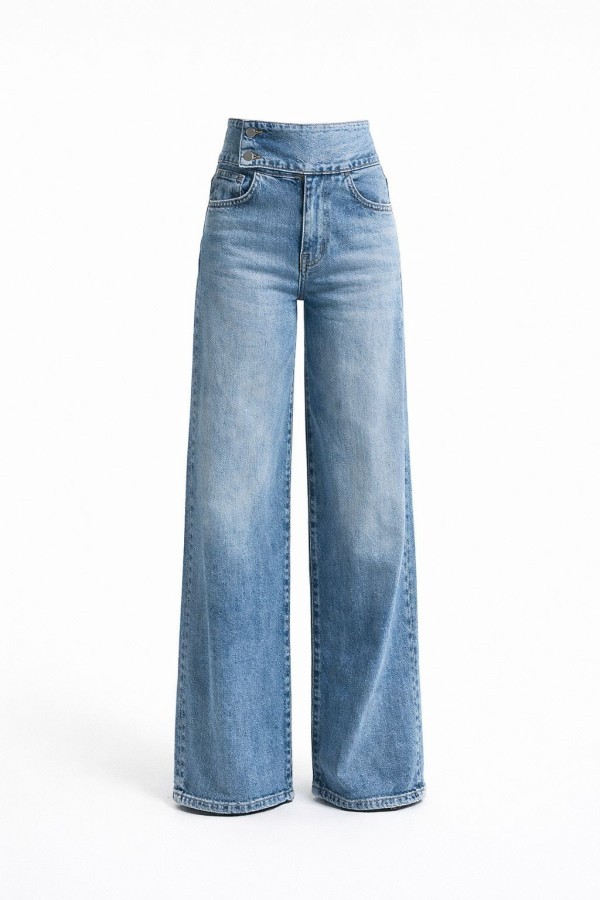 Double Side Buttoned Palazzo Blue Jeans