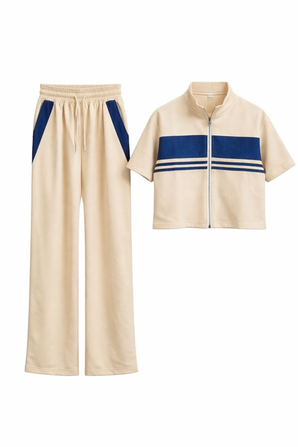 Denim Detailed Beige Set