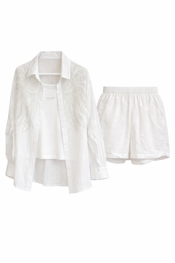Three Pieces White Shorts Set