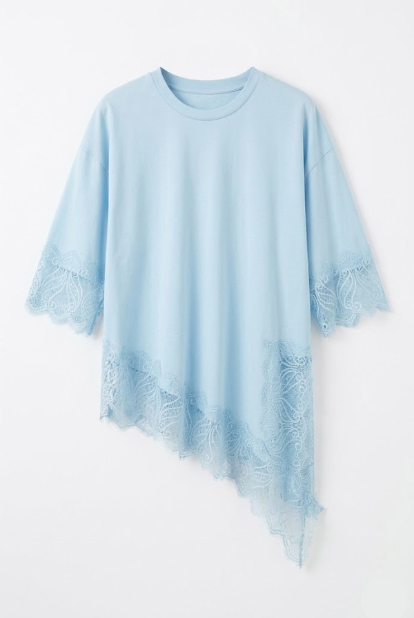 Asymmetric Lace Detailed Blue T-shirt