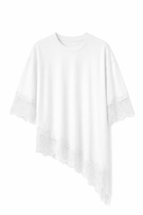 Asymmetric Lace Detailed White T-shirt