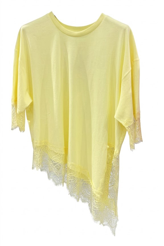 Asymmetric Lace Detailed Yellow T-shirt