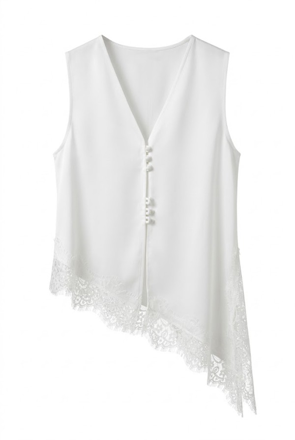 Asymmetric Lace Detailed White Top
