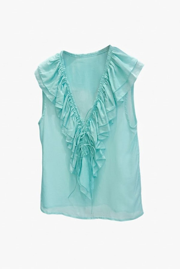 Ruffled Neck Detailed Aqua Blouse