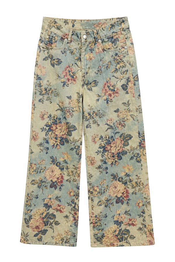 Colorful Floral Light Blue Jeans