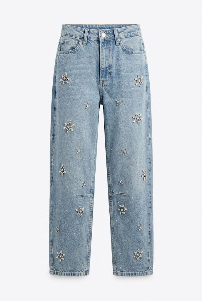 Floral Rhinestones Blue Jeans