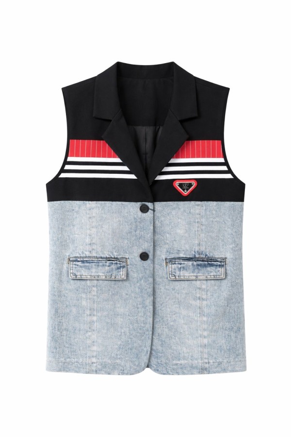 Half Black & Red Half Denim Vest