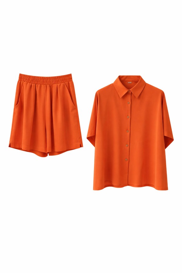 Short Sleeves Shorts & Shirt Orange Set