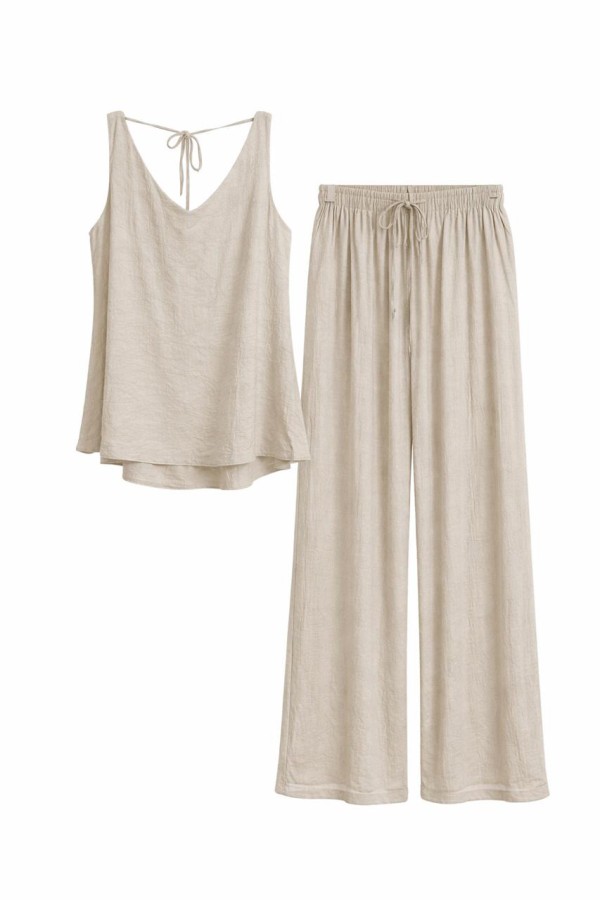 Linen V-neck Beige Set