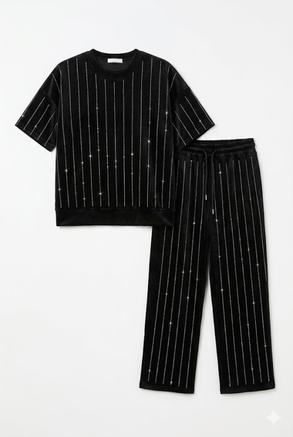 Rhinestones Striped Black Set