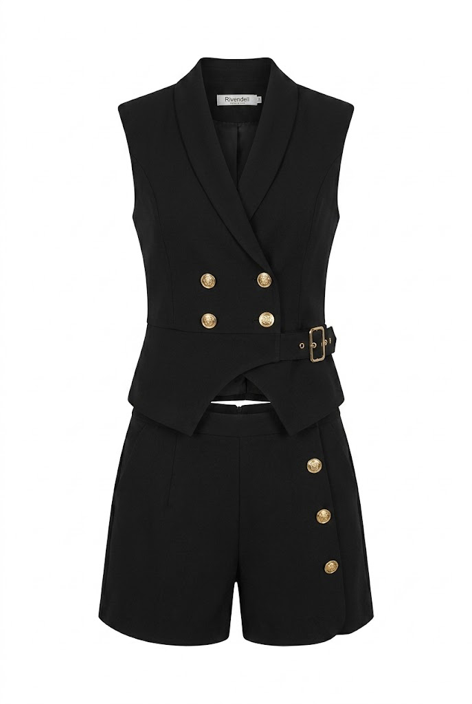 Gold Buttoned Black Set