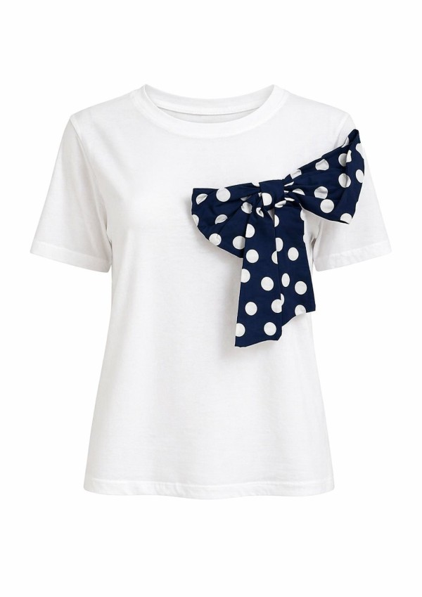 Polka Navy Bow White T-shirt